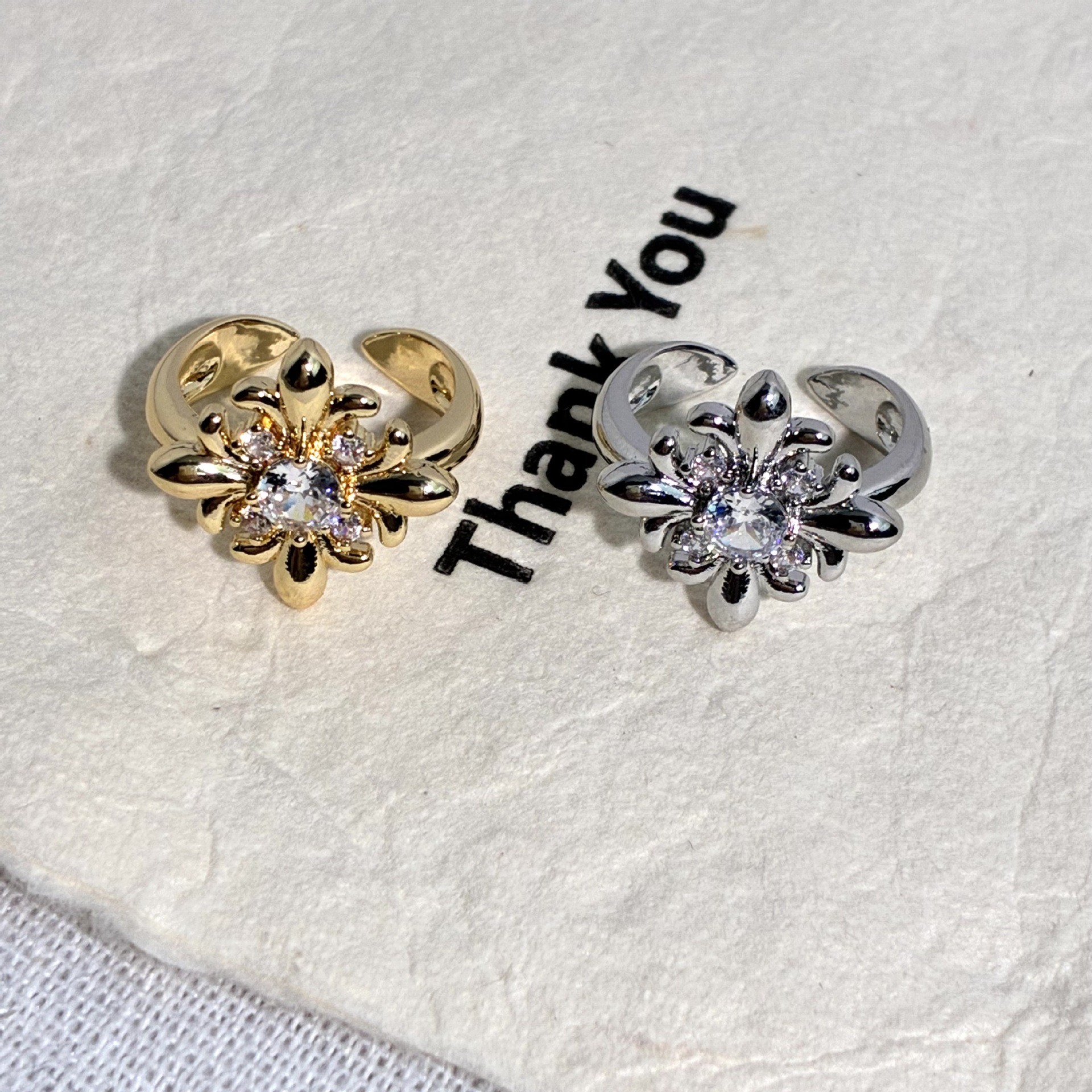 French Minimalist Style Vintage Iris Flower Square Ring Open Niche Super Shiny Women's New Popular Ring Accessory