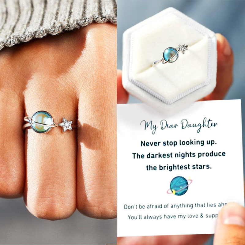 Amazon Non-Rotating Planet Ring for Women, Stress-Relief Anti-Anxiety Star and Moon Earth Adjustable Open Ring