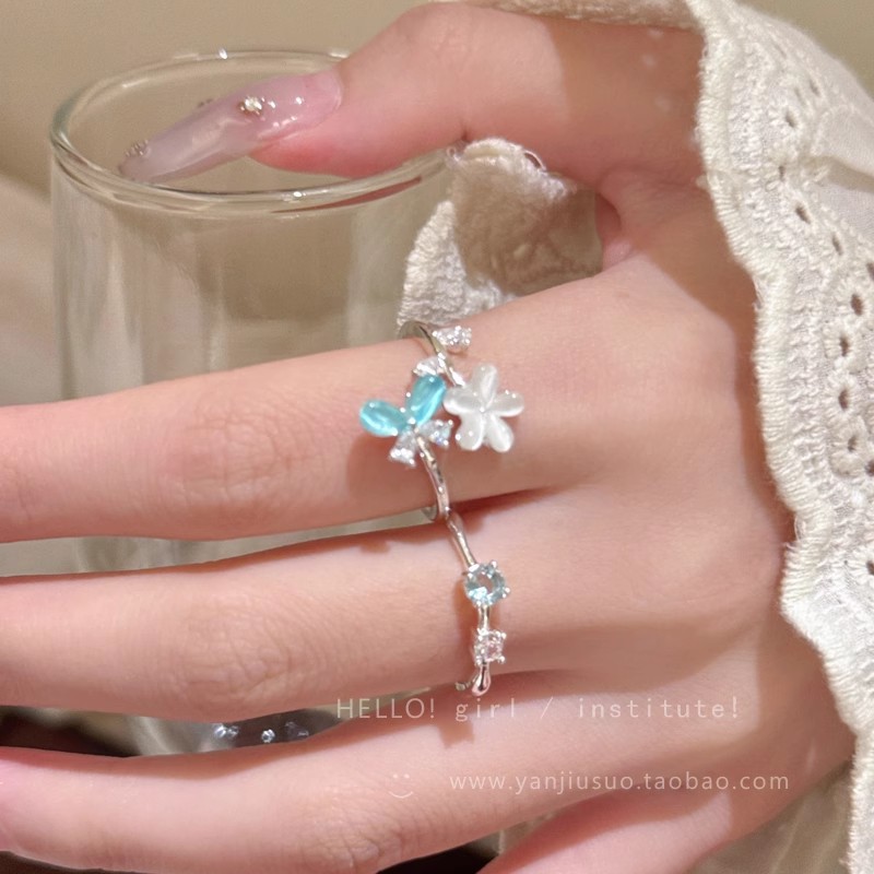 Flower Zircon Open Ring for Women 2025 New Index Finger Ring Accessible Luxury Style Niche Design High-End Ring Accessories