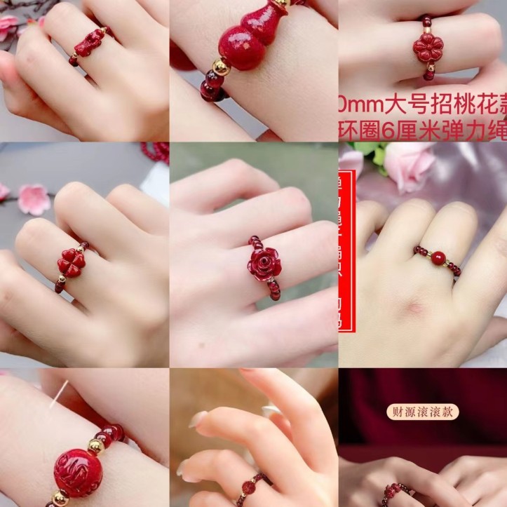 Wholesale Cinnabar Ring Female Cinnabar Garnet Ring Pixiu Ring Flower Ring Cinnabar Ring Tail Ring Jewelry