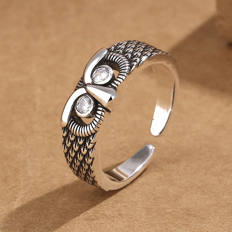 Cross-border European and American Retro Owl Ring Women's Personality Punk Street Hip-Hop Old Craft Men's and Women's Live Mouth Ring