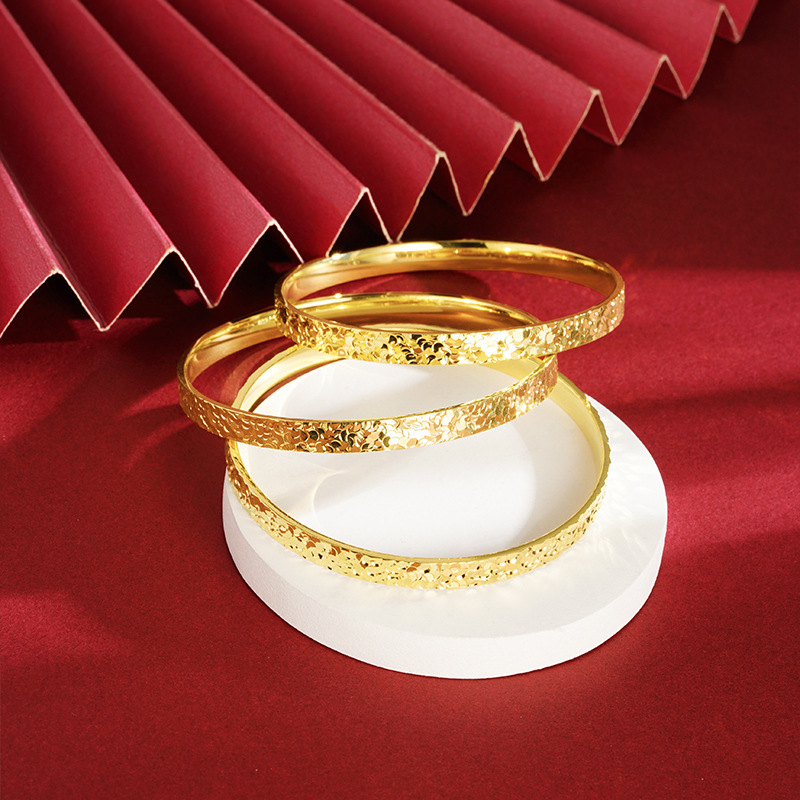 Crushed Ice Bracelet, Unisex Ring, Vietnamese Sand Gold, High-End Brass Imitation Bracelet for Women, Long-Lasting Jewelry