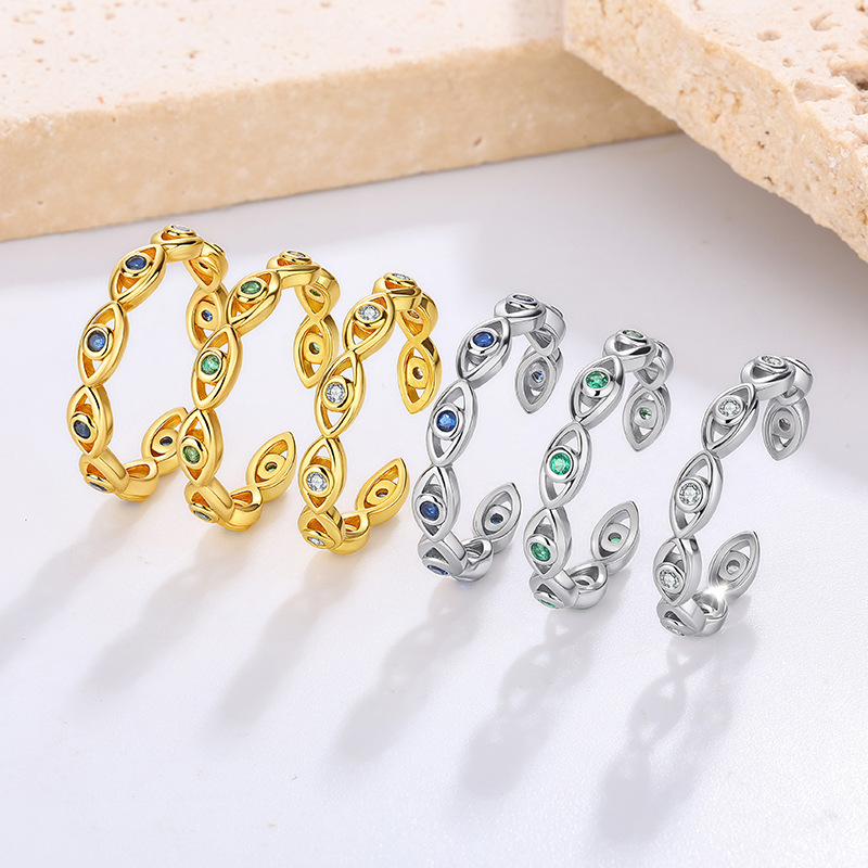 Cross-Border European and American Style Fashion Devil's Eye Ring Ins Trendy Niche Accessible Luxury High-End Zircon Open Tail Ring for Women