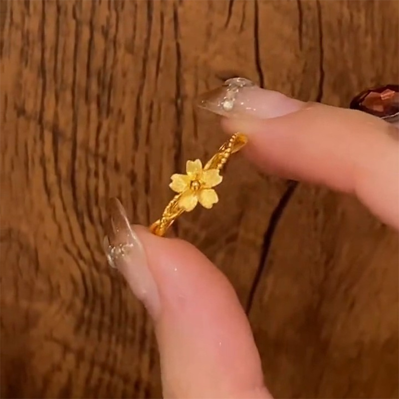 Little Red Book Explosions Golden Peach Blossom Ring Female Super Fairy Gentle Winding Flowers Adjustable Ring for Girlfriend