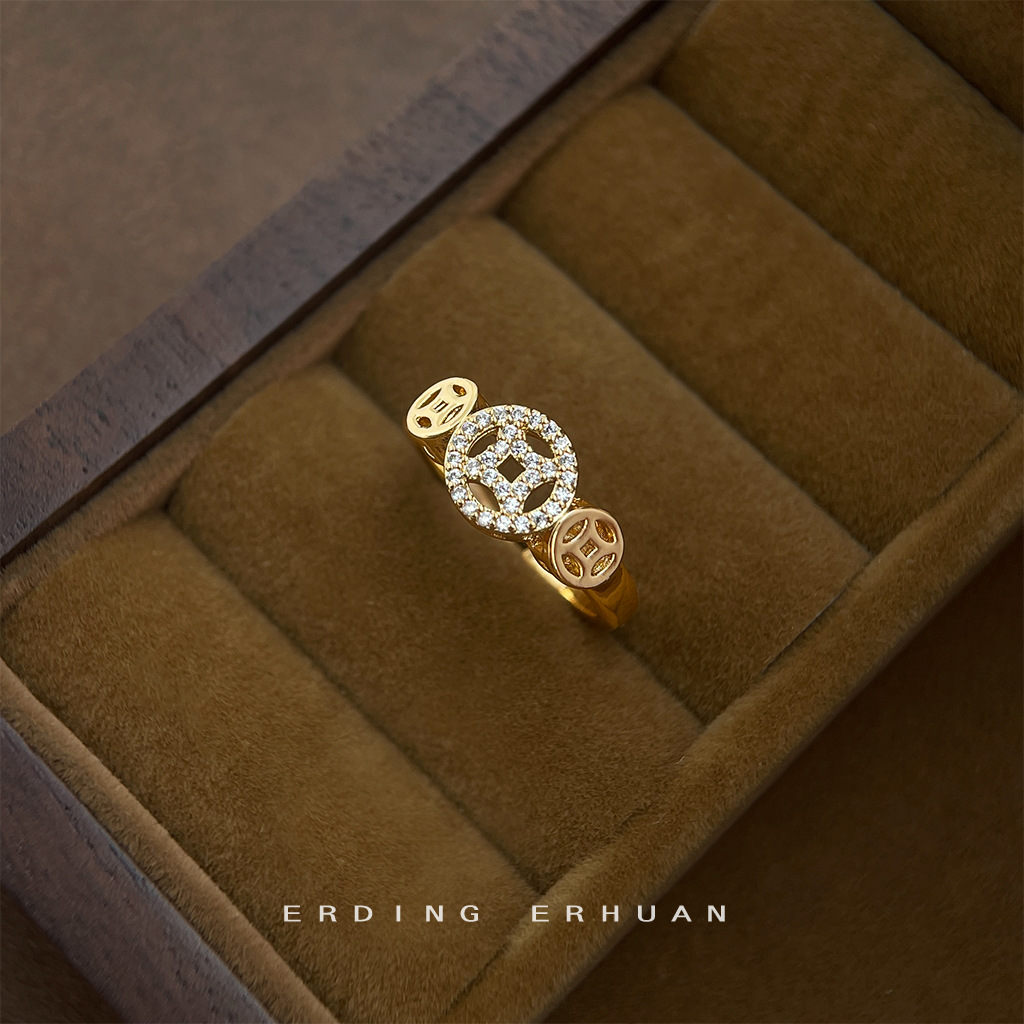 [Money to Money] ~ Micro-inlaid zircon electroplating 18K real gold thickened opening adjustable ring ring ring female