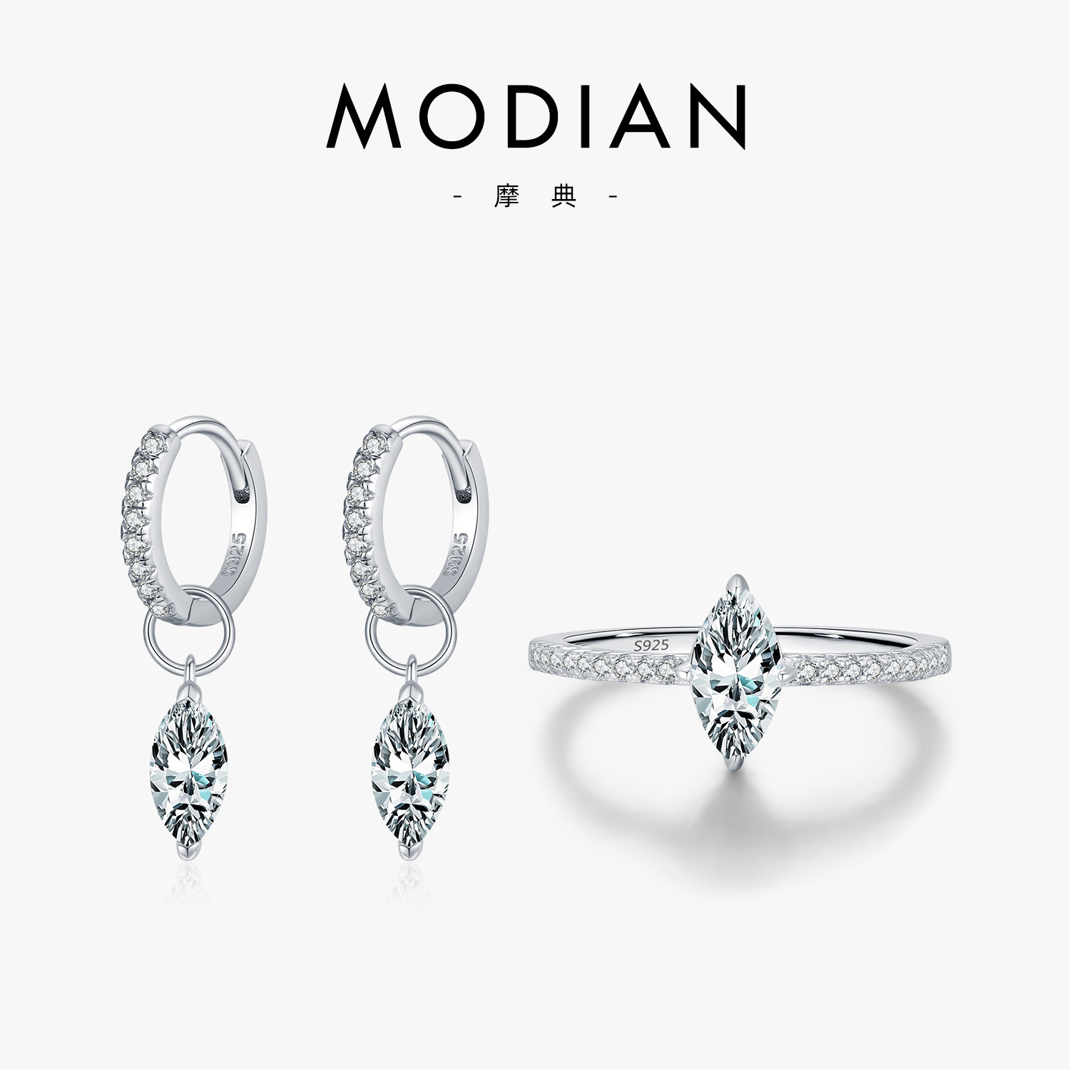 MODIAN 50-point Mosan Diamond Ring Women's S925 Sterling Silver Light Luxury Diamond Horse Eye Smart Pendant Earrings Women
