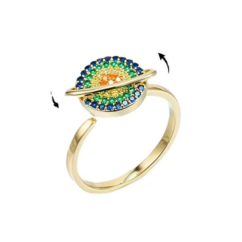 European and American rotating color zircon planet ring female ins Net red transfer anti-stress anxiety food finger ring wholesale