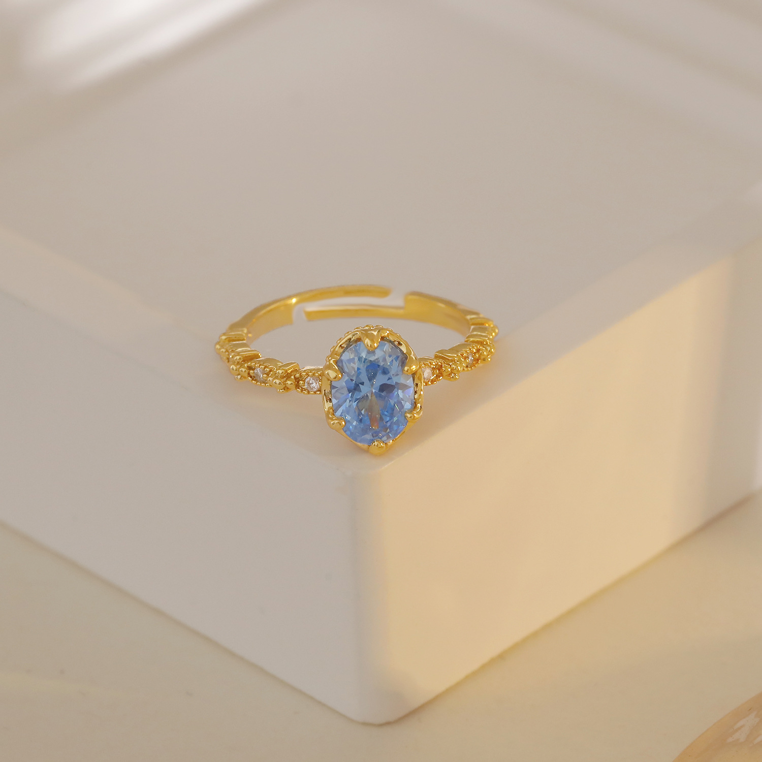 Ring female niche design Golden open ring light luxury blue zircon simple all-Match ring 2023 new fashion