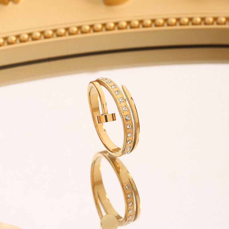 Cross-border hot-selling fashion personalized nail diamond titanium steel ring women's geometric design popular all-match ring food finger ring