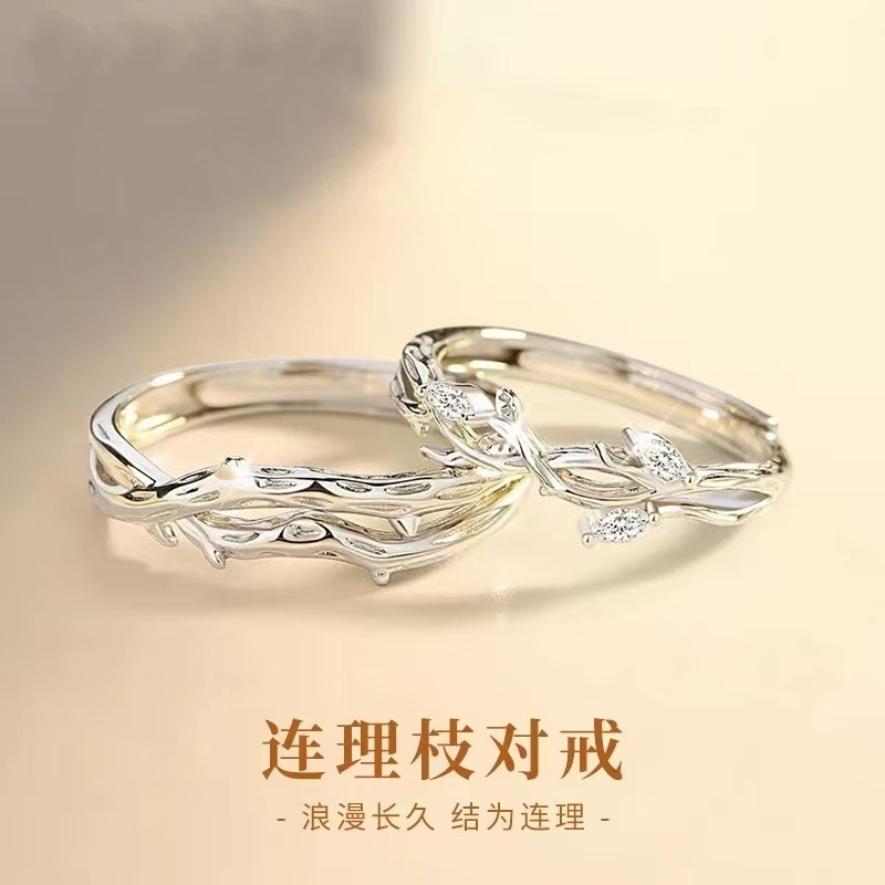 Korean Style Couple Rings for Women, Niche Design, Branch Texture Ring, Valentine's Day Birthday Gift for Girlfriend
