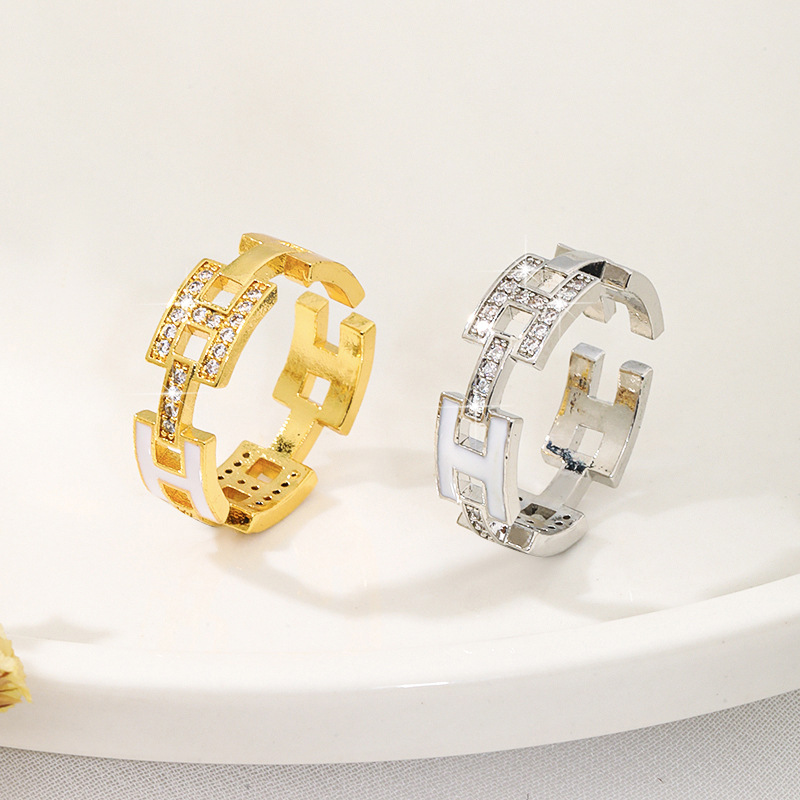 Internet Celebrity Exquisite Super Flash Zircon Ring Girl's Letter Finger Ring Opening Adjustable Real Gold Electroplating Advanced Sense Light Luxury