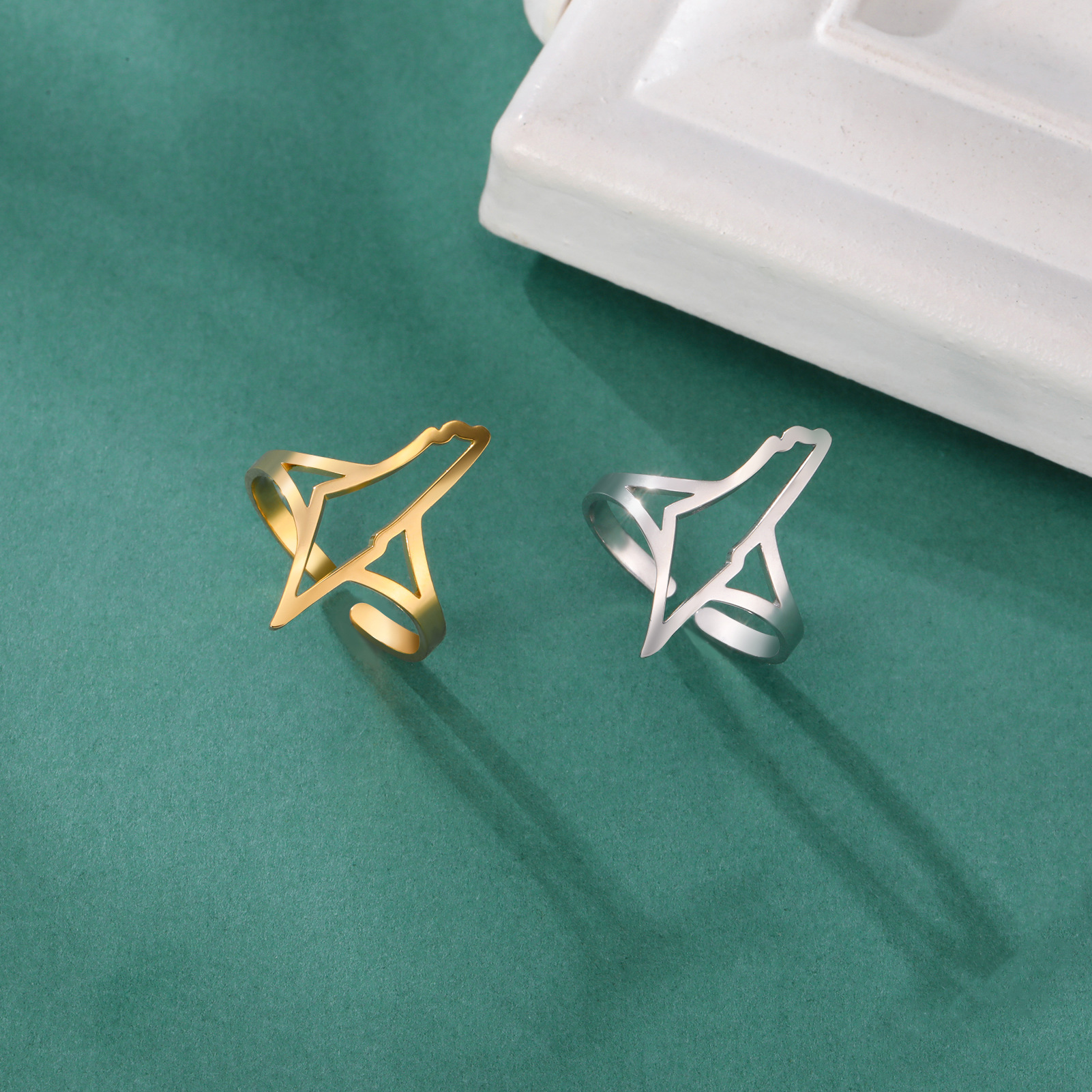 Women's stainless steel adjustable open ring geographic jewelry gift