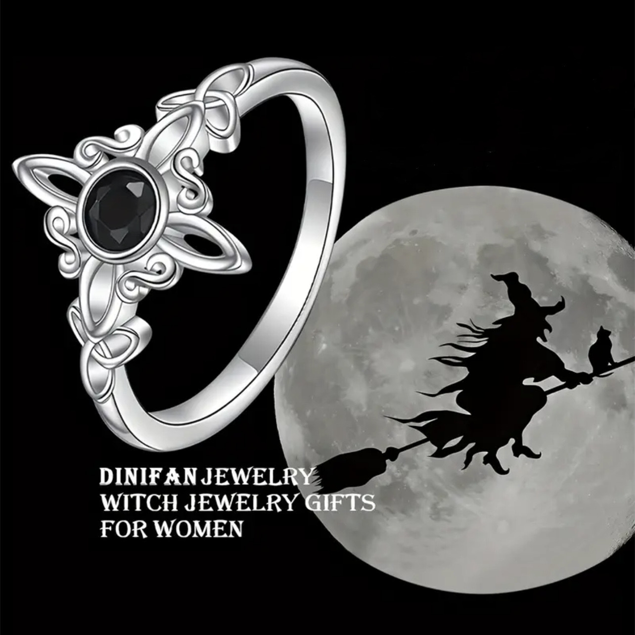 Witch Magic Knot Ring Ripple Fashion Celtic Knot Black Diamond Ring Girls Cool Style Cute Style