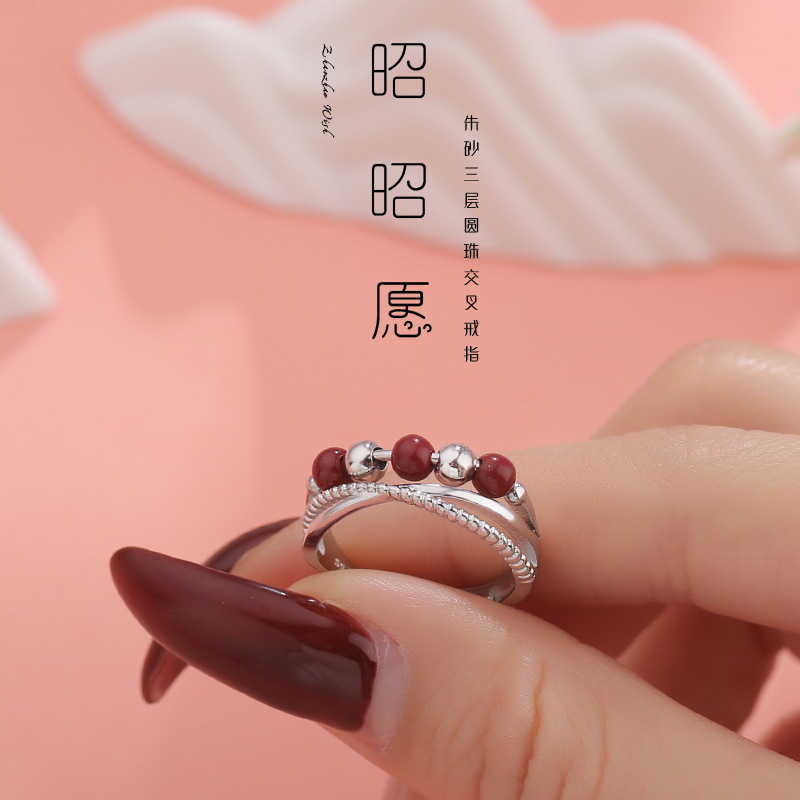 Minsheng Retro Cinnabar Ring Exquisite New Chinese Cross Design Ring Women's Retro Ethnic Style Exquisite Ring