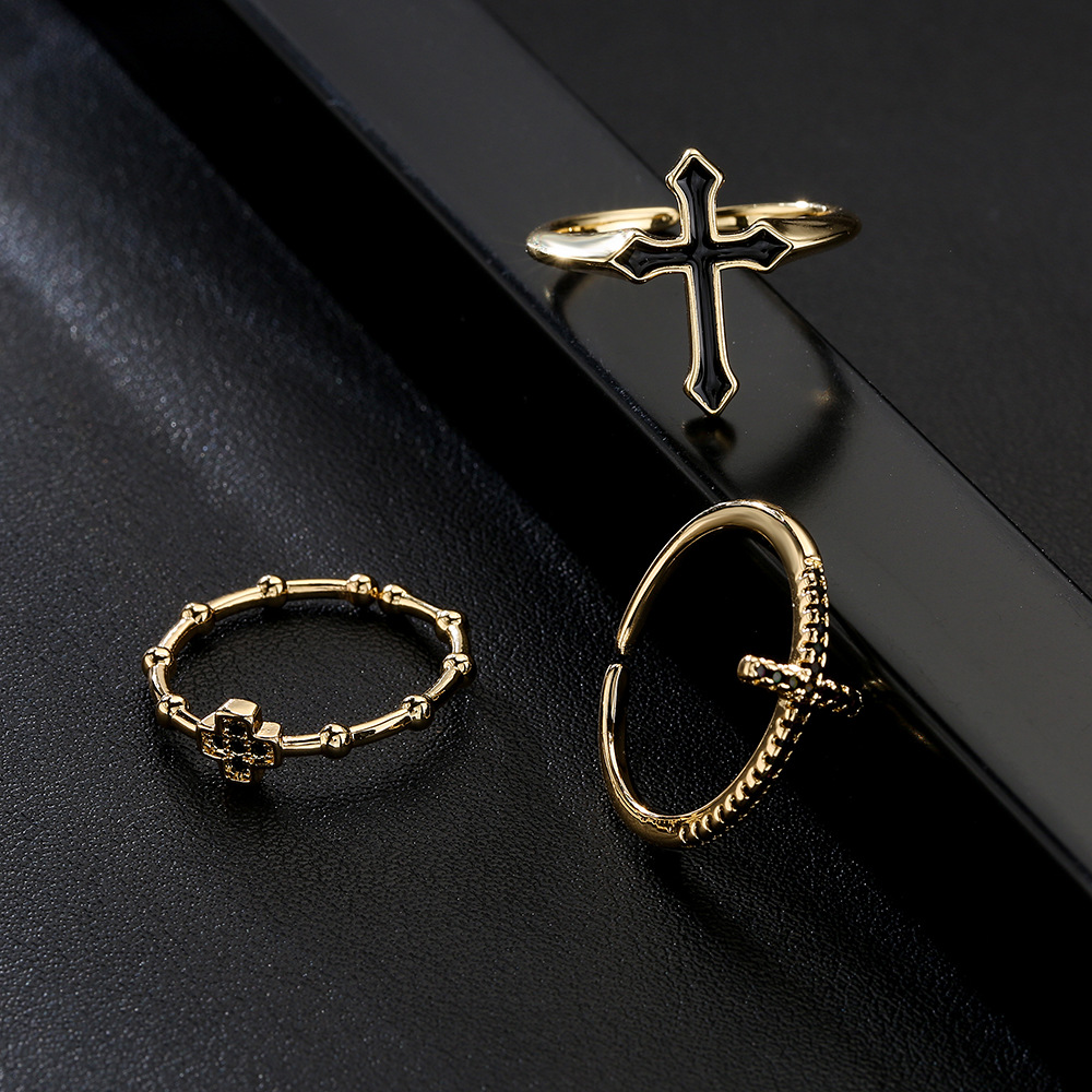 Cross double-layer ring female niche design sense ins cold style fashion personality open adjustable ring jewelry