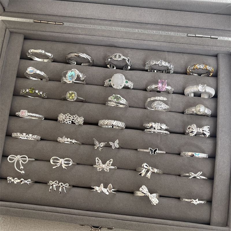 925 Sterling Silver Matte Frosted Diamond Ring Women's Simple Hong Kong Style Light Luxury Electric Platinum Open Ring 5646G