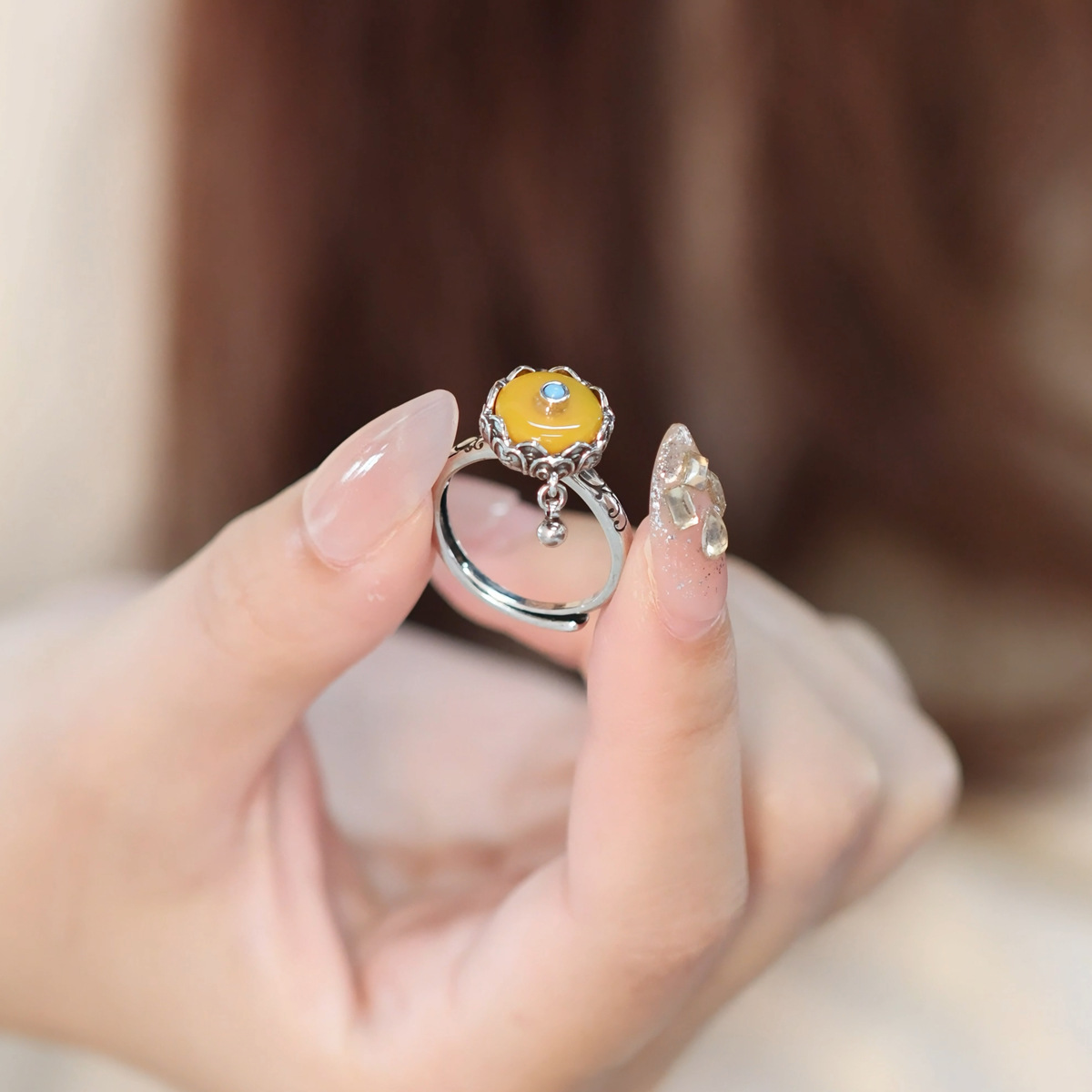 New Chinese-style Oval Egg Face Ring Women's Elegant Niche All-match Open Ring Fashionable Light Luxury Girl's Gift Jewelry
