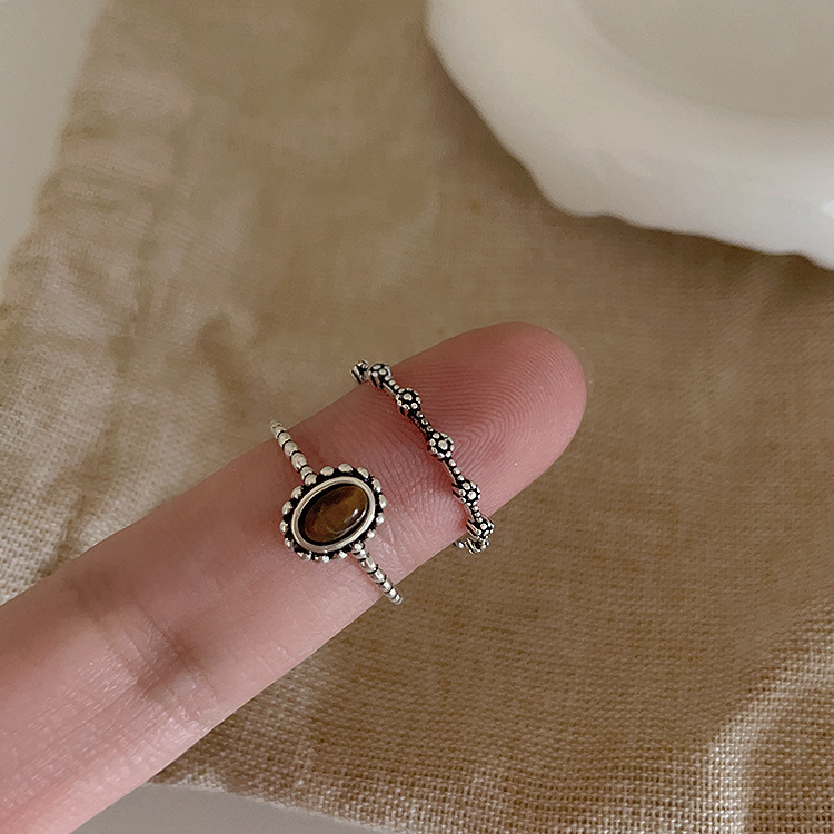French Style Retro Distressed Cat's Eye Flower Ring Set Women's Korean-style Niche Personalized Simple All-match Ring Ring
