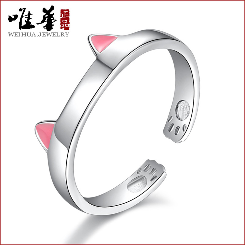 Korean Style Personality Open Loose Cat Ring Girl's Silver Jewelry Ring Cute Cat Ear Paw Ring
