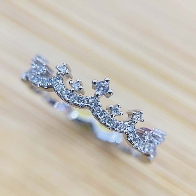 JZ525 New Shimizu Mori Small Crown Women's Ring Inlaid with Zircon Imitation Diamond Ring Girl's Corrugated Ring