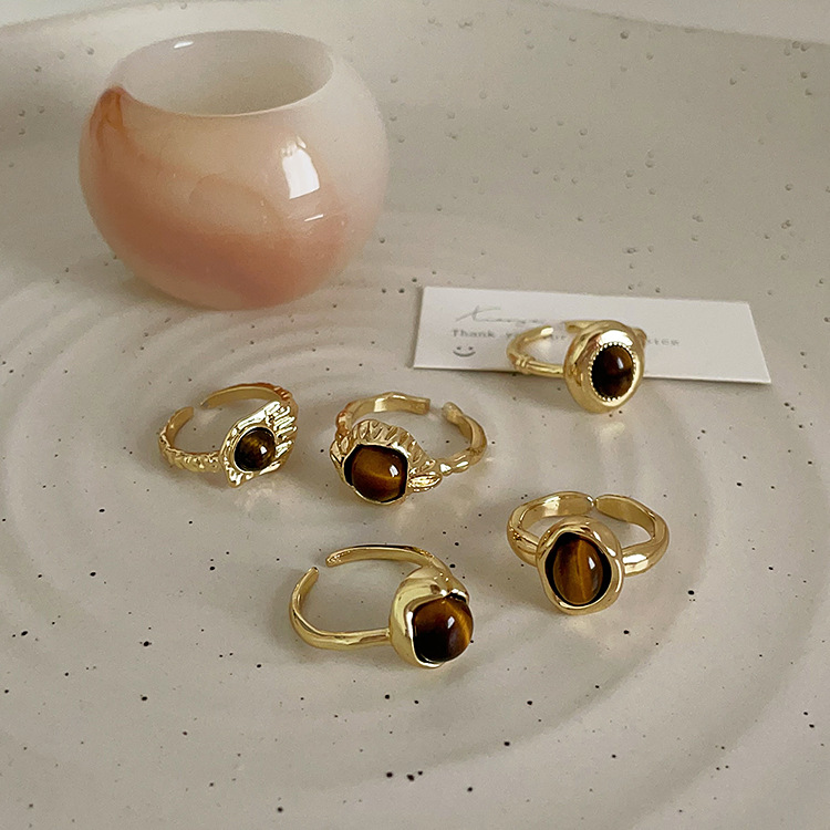 French retro irregular Metal Tiger Eye Stone open ring female niche design personality temperament all-Match ring