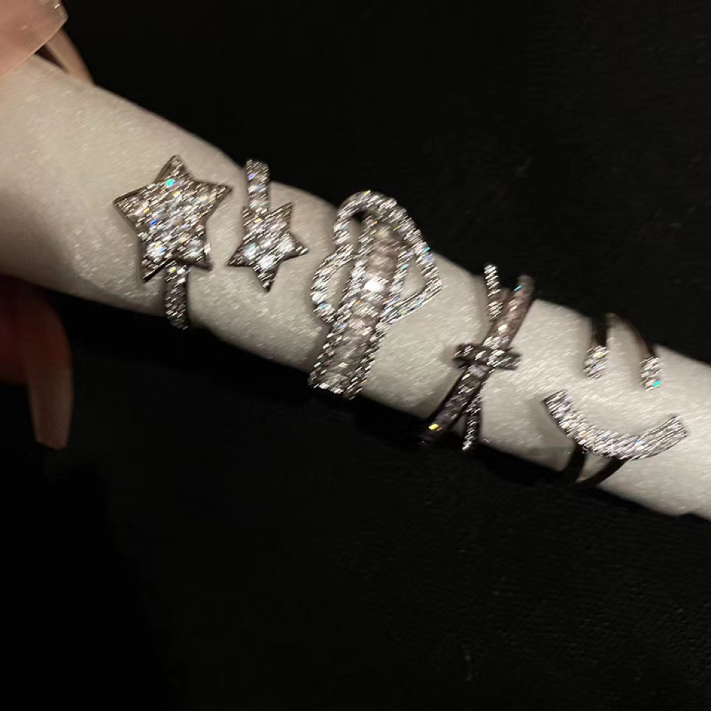 Super Flash Letter Zircon Open Ring Female Niche Design Index Finger Ring Fashionable Stylish Bestie Ring Trend
