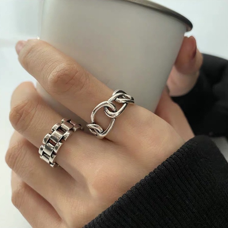 Korean Style Old Watch with ins Cool Style Simple Cross Opening Finger Ring Fashionable Personalized Ring for Women and Men