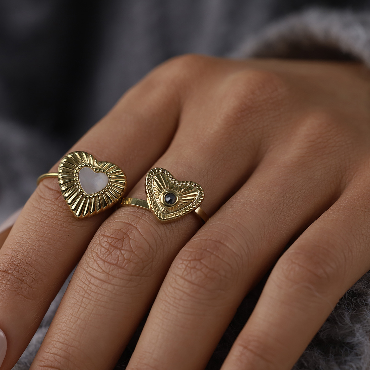 Love-Shaped Micro-Encrusted Black Zircon Ring for Women Niche High-End Titanium Steel Non-Fading Open Ring 18K Gold Bracelet