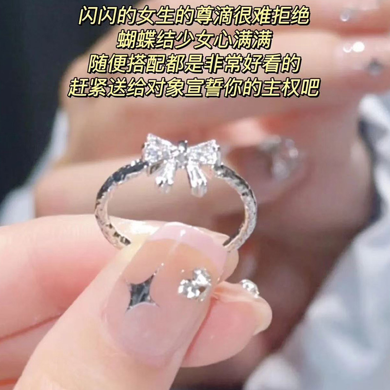 Sakura Pink Diamond Bow Ring Romantic Girly Daughter-Like Sweet Zircon Light Luxury Open Ring