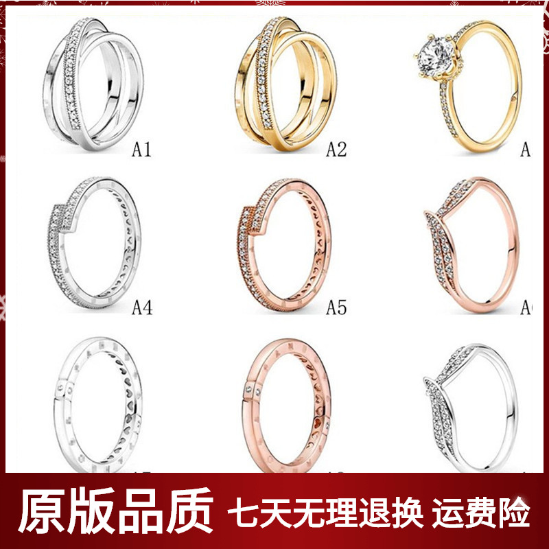 Pandora S925 Silver New Style Sparkling Staggered Circle Three-Ring Ring New Pair Ring Simple Style Ring for Women