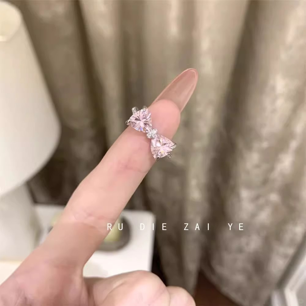 Sakura Pink Diamond Bow Ring Romantic Girly Daughter-Like Sweet Zircon Light Luxury Open Ring