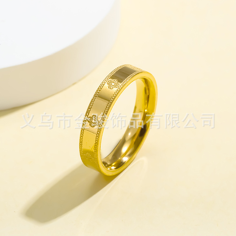 Live explosions titanium steel ring 18k gold stainless steel women's closed four-leaf clover small lucky ring kaleidoscope ring