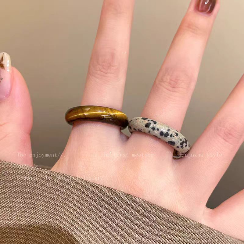 Tiger Eye Stone Ring Women's Autumn and Winter Retro Fashion Personalized Index Finger Ring Temperament Elegant and Easiest for Match Spotted Stone Ring