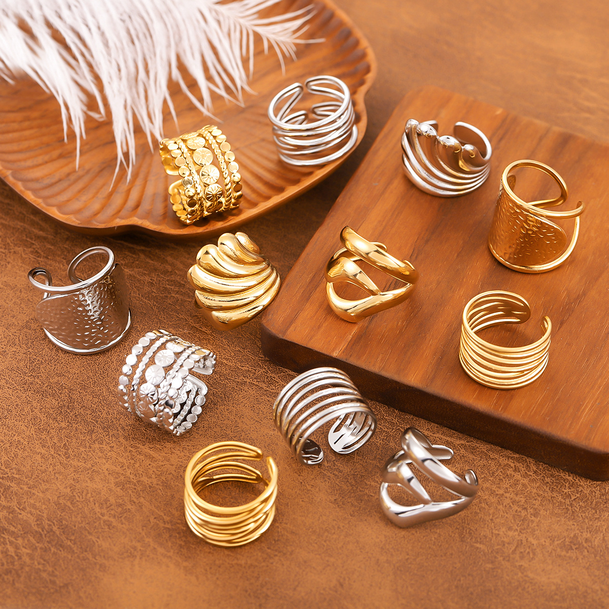 European and American Cross-Border Ins-Style Titanium Steel Ring for Women, Light Luxury, High-End Feel, Niche Open-Ended Gold-Plated Stainless Steel Fashion Ring