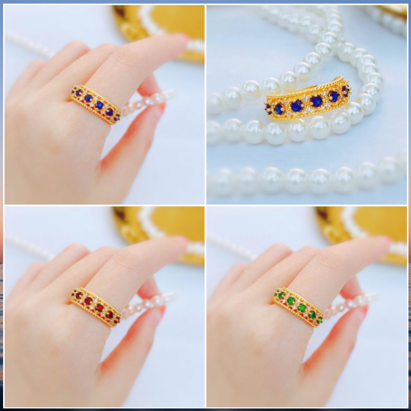 Italian retro palace style lace craft row ring Blue Red Green pointed crystal high carbon diamond open ring for women