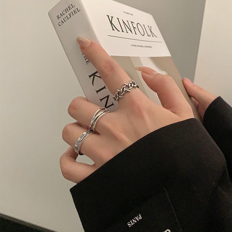 Retro retro retro ins Roman Digital three-piece ring female trendy niche design cold style student open ring male