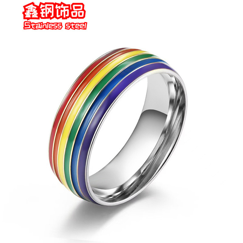 Factory supply Amazon rainbow element titanium steel ring glue ring niche personality stainless steel jewelry wholesale