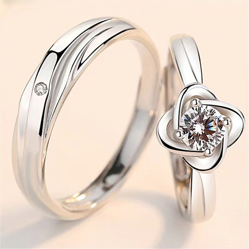 Four-leaf clover diamond-encrusted couple's ring a pair of simple and fashionable Mori style marriage proposal ring for men and women small fresh flower ring
