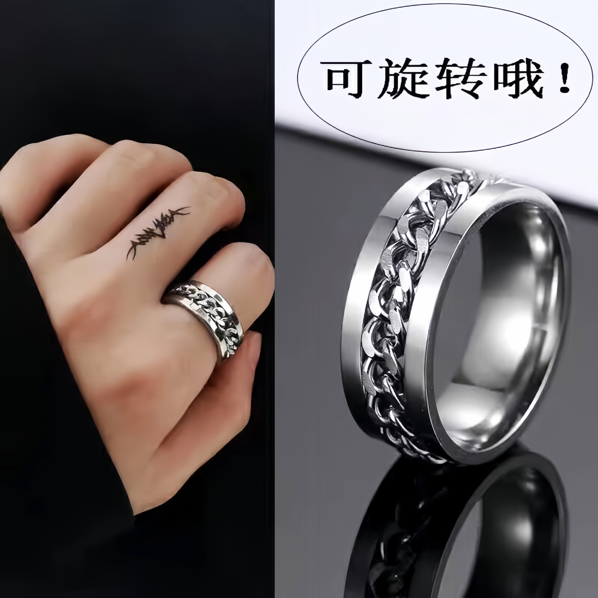 Ins European and American Hip-Hop Rotatable Bottle Cap Ring Chain Rotating Titanium Steel Ring Unisex Hip-Hop Personalized Jewelry