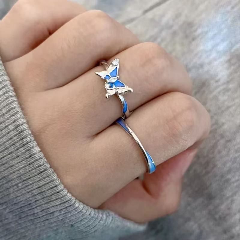 Dreamy Blue Butterfly Luminous Butterfly Couple Ring Niche Light Luxury Versatile Luminous Atmosphere Men and Women Ring