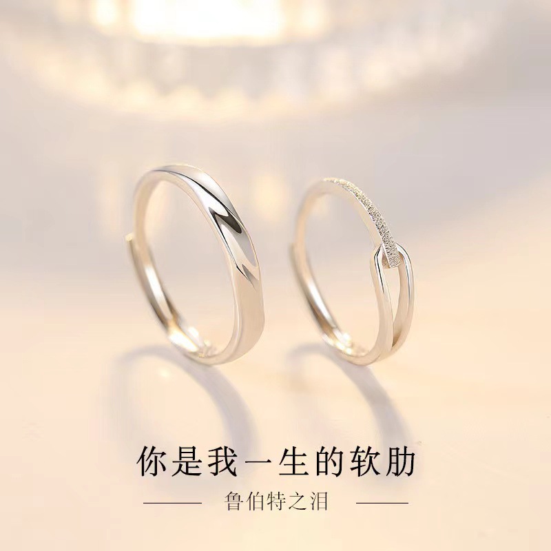 Rupert's Tears Couple's Ring Trendy Men's Valentine's Day Gift Fashion Small Fresh Water Ripple Opening Ring