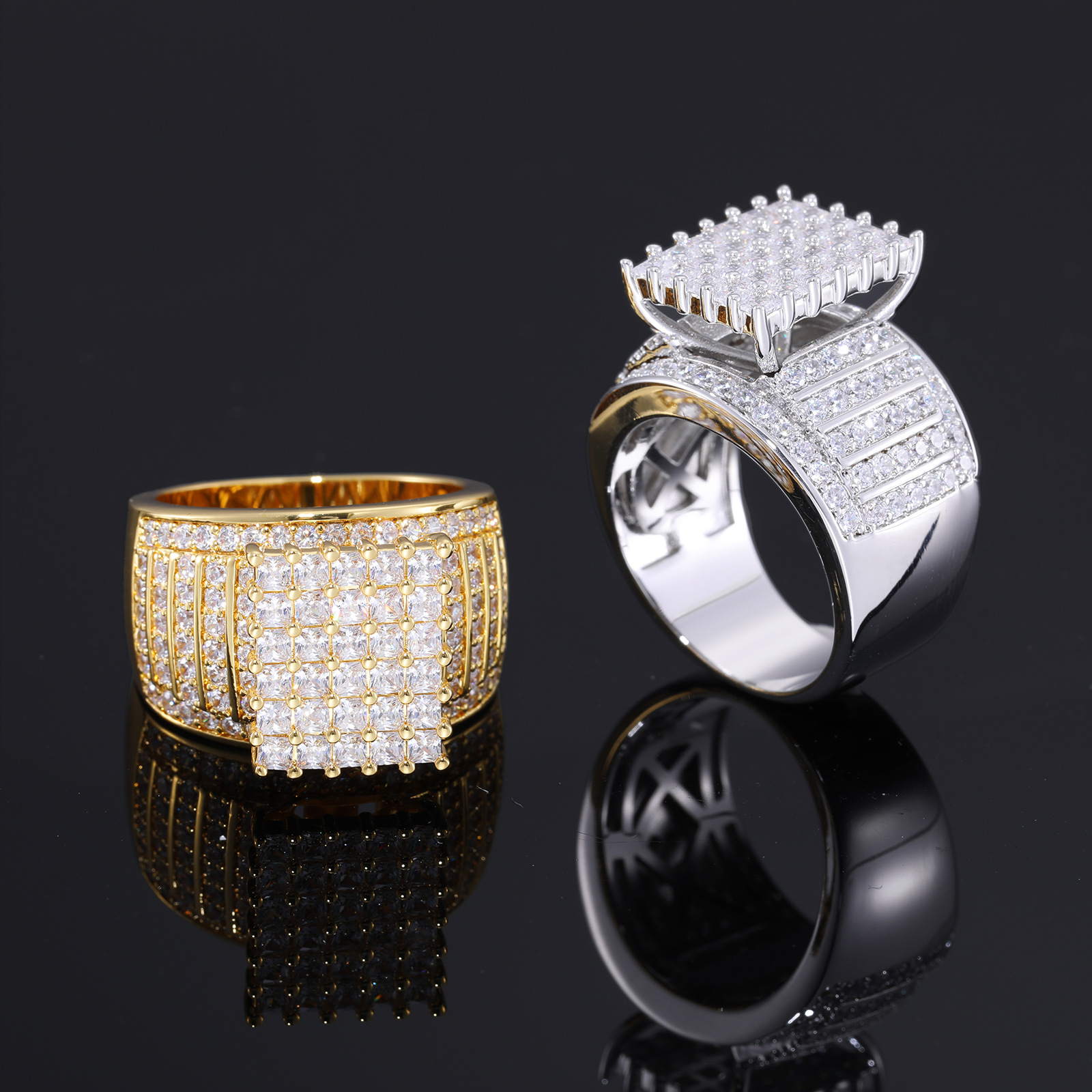 Wholesale European and American hip-hop punk square real gold plating zircon ring hiphop hipster men's cool ring