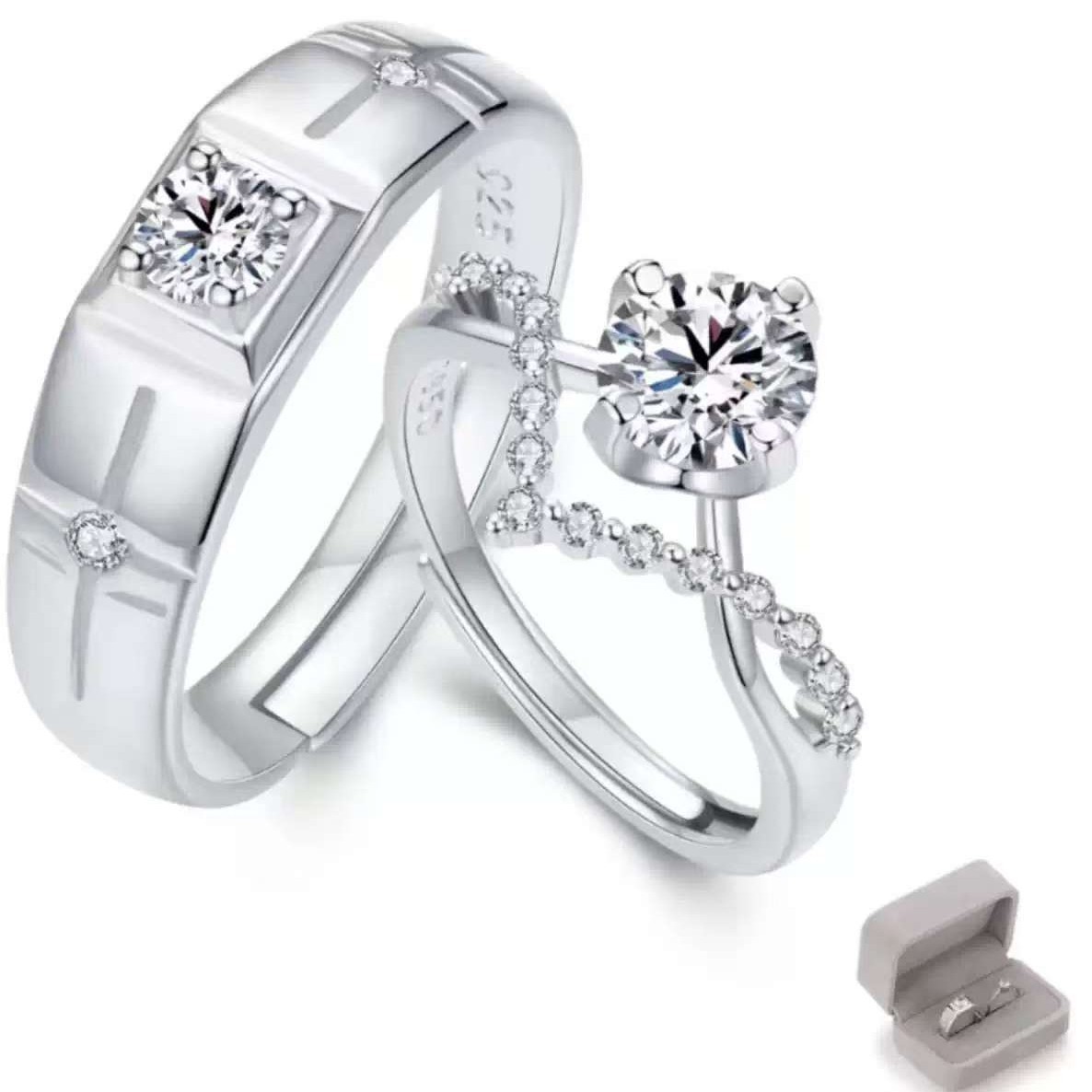 Crowned with Love Couple Ring Four-Prong 1 Carat Zircon Diamond Ring a Pair of Men's and Women's Wedding Rings Crown Open Ring