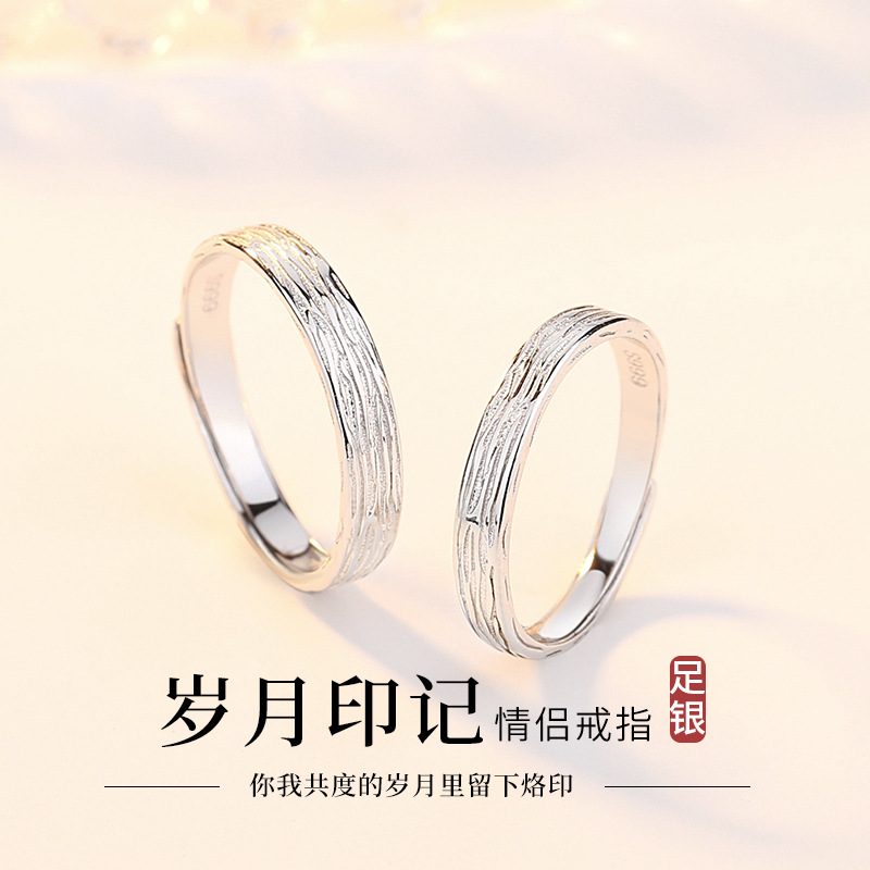 Age Seal Couple's Ring Pair of 999 Sterling Silver Pair Ring for Men and Women Simple Opening Adjustable Handset Hair