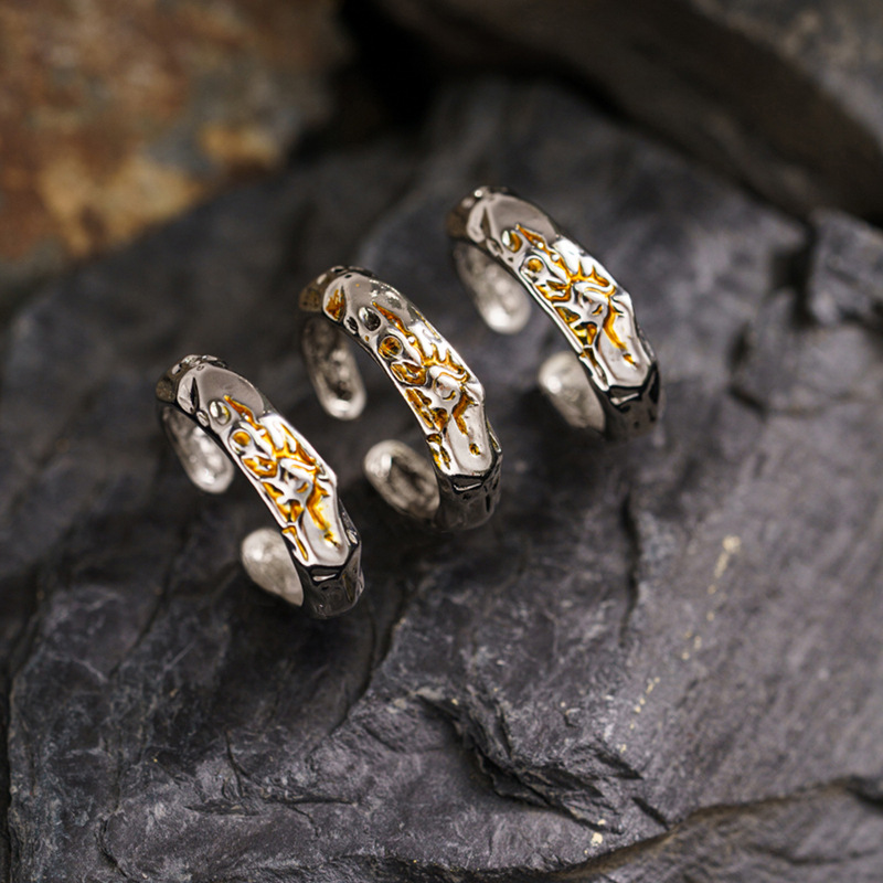 Golden Deer King S925 silver ring female girlfriends sun moon ring male couple morning and evening sterling silver ring