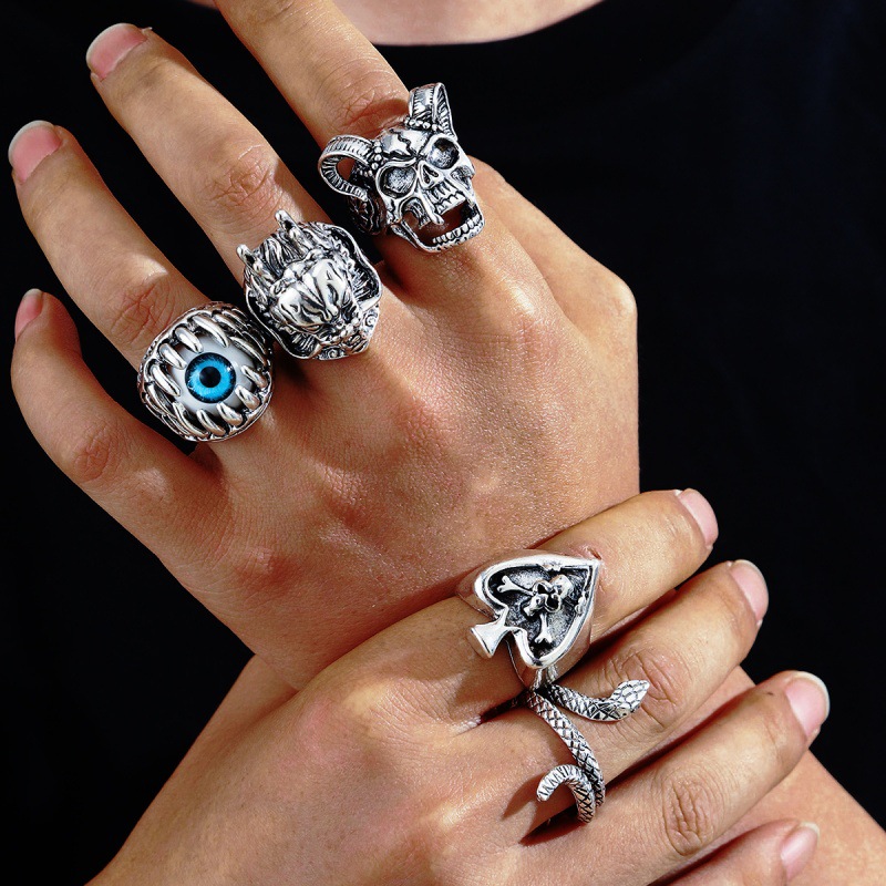 Cross-Border European and American Hot-Selling Men's Trendy Rings Retro Devil's Eye Punk Skull Ring Fashion Jewelry