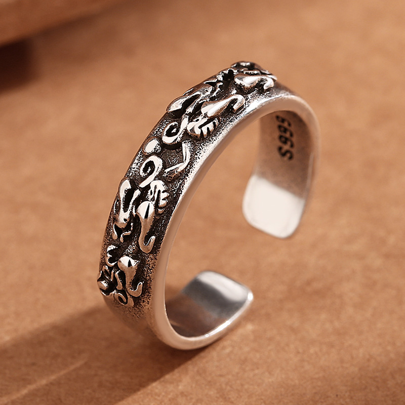 Carlo Ge Retro Thai Silver Pixiu Ring for Men and Women Personalized Opening Adjustable Creative Literary Style Index Finger Tail Ring