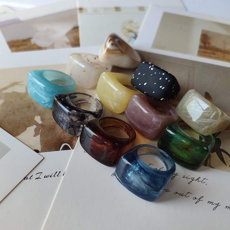 European and American Acrylic Square Rings, Multi-Color Mixed Color Rubber Rings, Personalized Semi-Transparent Men's and Women's Rings
