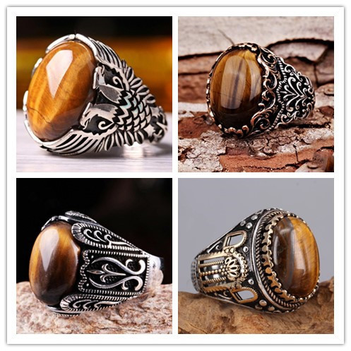 Europe and the United States cross-border hot selling jewelry yellow tiger stone woven stripe ring trend men's retro fish fashion ring