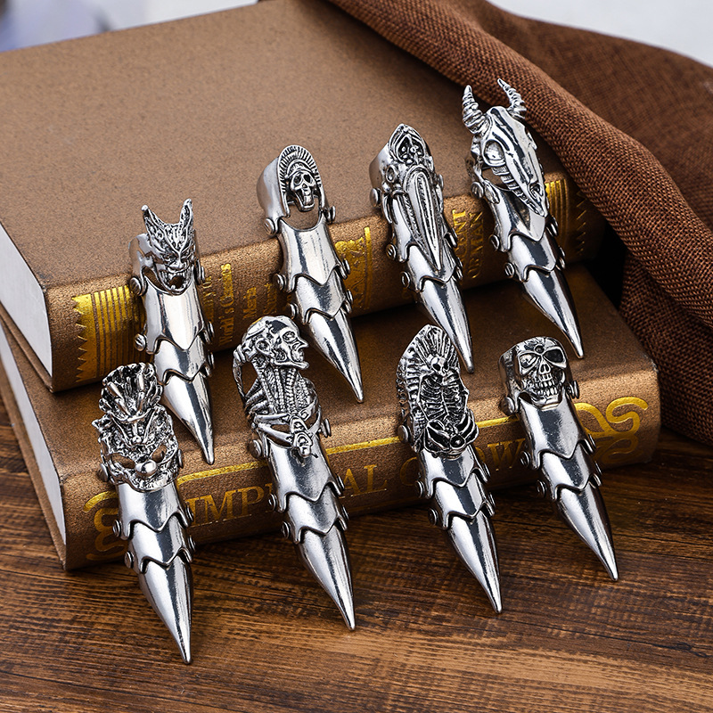 New British Retro Ring Men's Trendy Exaggerated Skull Finger Set Three Section Bending Highlight No Falling Ring
